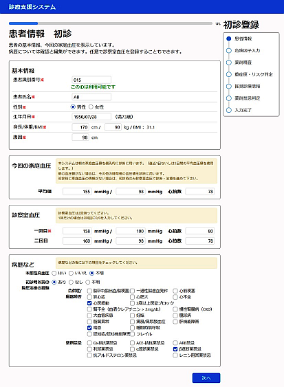 このシステムは,患者背景や血圧値,リスク因子などを入力すると,著者の臨床経験やガイドラインを基に総合的に判断し,どのような診療の推奨をするのか,確認することができます。